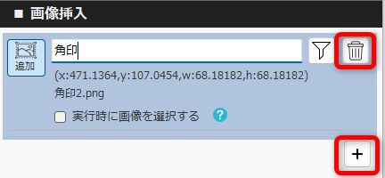 ほかにも挿入したい画像があれば、「+(プラス)」ボタンをクリックして、画像挿入設定を追加します。